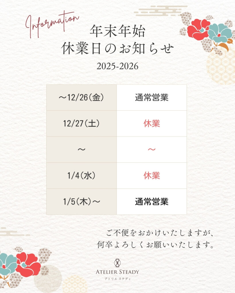 本年もアトリエ ステディをご利用いただきまして誠にありがとうございます。